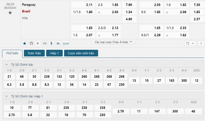Soi kèo châu Á, kèo chấp Paraguay vs Brazil