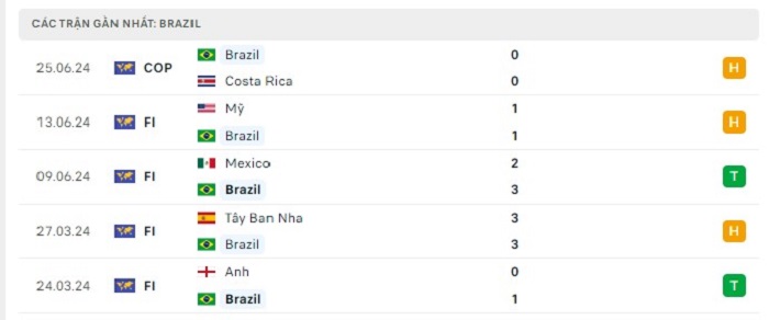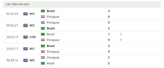 Phong độ gần đây Paraguay vs Brazil