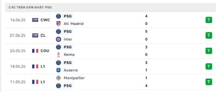 - Phong độ Paris Saint Germain