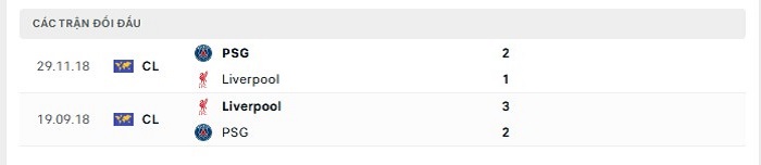Thống kê có thể thấy được cả 2 lần gặp nhau trước đây giữa Paris Saint Germain và Liverpool cũng đều có được từ 3 bàn thắng ghi được trở lên. Nhưng dù vậy lần gặp nhau sắp tới đây của hai đội sẽ khó có thể xuất hiện tỷ số cao ghi được bởi Liverpool thể hiện được sự chắc chắn của mình tại Champions League mùa này, hơn nữa ở vòng bảng thì hàng công của Paris Saint Germain cũng từng có những khoảng thời gian gặp rất nhiều khó khăn trong việc ghi bàn vào lưới đối phương.