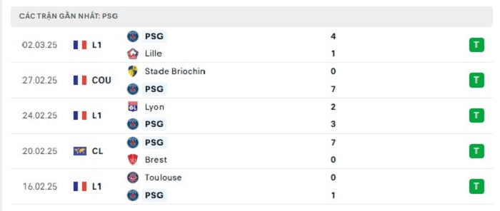 - Phong độ Paris Saint Germain