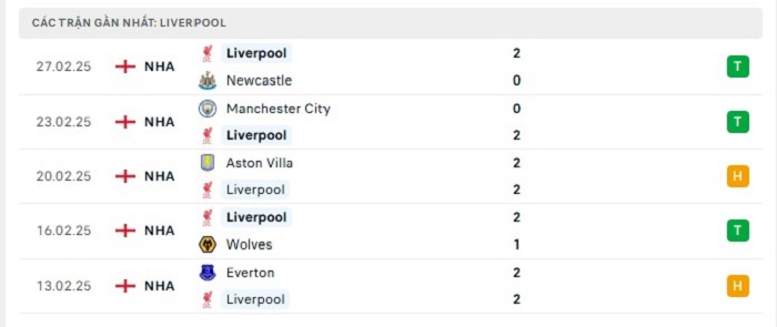 - Phong độ Liverpool