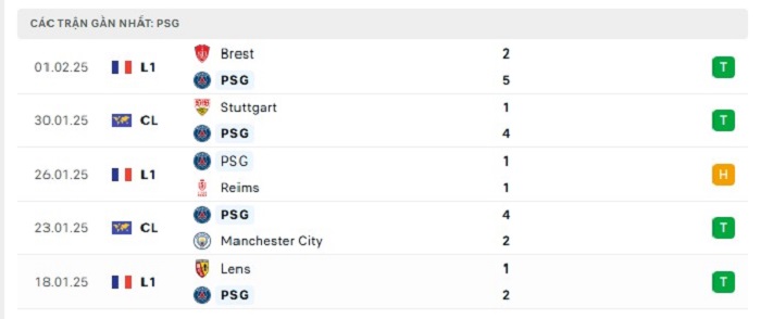 - Phong độ Paris Saint-Germain