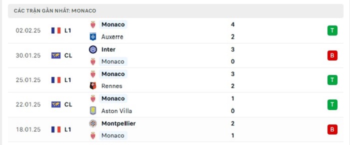 Phong độ gần đây Paris Saint-Germain vs Monaco
