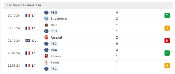 • Phong độ Paris Saint Germain