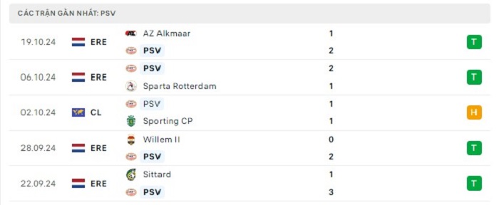 • Phong độ PSV Eindhoven