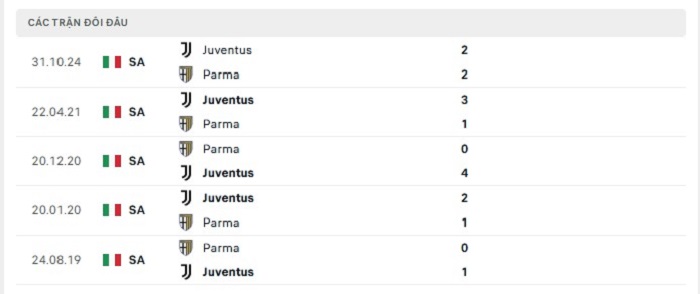 Thành tích trong quá khứ cũng không hề ủng hộ Parma trong những lần gặp Juventus trước đây, thật vậy bởi tổng cộng 10 lần gặp nhau trước đây của hai đội thì thành tích tốt nhất của đội chủ nhà cũng chỉ có được vỏn vẹn 1 trận thắng theo kèo châu Âu trong khi có tới 7 thất bại trước đối thủ. Mùa này Juventus họ cũng mới chỉ có 3 lần phải nếm mùi thất bại theo kèo châu Âu được niêm yết có thể thấy được họ cũng không phải là đối thủ dễ bị đánh bại, chính bởi vậy mà có thể kỳ vọng vào đội khách ở chuyến hành quân lần này.