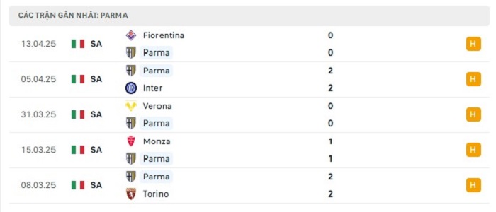 Trong quá khứ các trận gặp nhau giữa Parma và Juventus vốn cũng không có quá nhiều bàn thắng ghi được, đặc biệt là trên sân nhà của Parma khi có tới 7 trong 10 lần gặp nhau gần đây của hai đội cũng chỉ có được từ 2 bàn thắng ghi được trở xuống. Hàng công của Juventus mùa này không mạnh nhưng họ cũng có một hàng thủ thi đấu đầy chắc chắn khi mới chỉ nhận 30 bàn thua sau 32 trận, do vậy mà khó có thể kỳ vọng tới một trận đấu có tỷ số cao ghi được ở lần gặp nhau sắp tới.