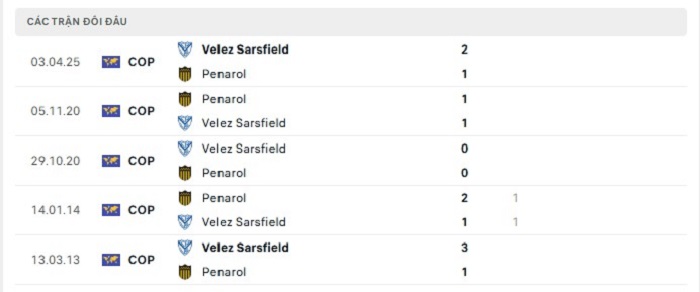 Lịch sử đối đầu của Penarol vs Velez Sarsfield