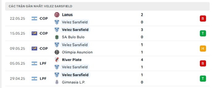 • Phong độ Velez Sarsfield