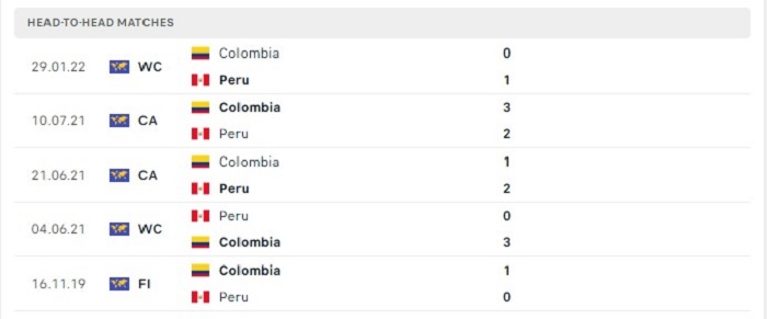 Thống kê ở 10 trận gần đây nhất trên mọi đấu trường Peru cũng chỉ thắng được 3 trận đấu theo mốc kèo châu Âu của trận đấu. Bên kia sân Colombia thể hiện sự thăng hoa của mình với thành tích bất bại ở 10 trận gần đây khi thắng kèo châu Âu được 8 trận đấu và có 2 trận hoà kèo châu Âu cả trận. Năng lực của Colombia đang được duy trì phong độ một cách ổn định tại thời điểm này vì vậy mà khả năng thắng trận của họ là điều nằm trong tầm tay.