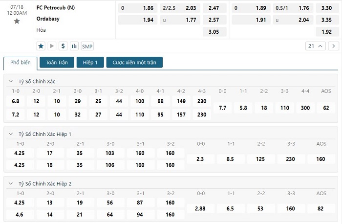 Soi kèo châu Á, kèo chấp Petrocub vs Ordabasy