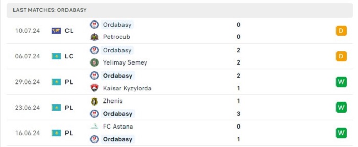 Phong độ gần đây Petrocub vs Ordabasy