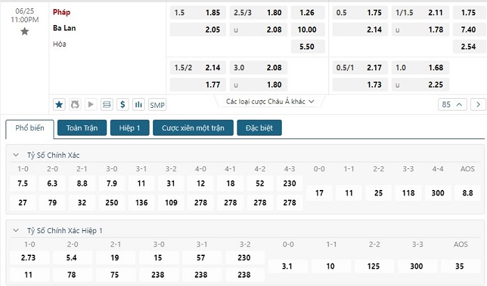 Bảng tỷ lệ kèo bóng đá trận đấu Pháp vs Ba Lan