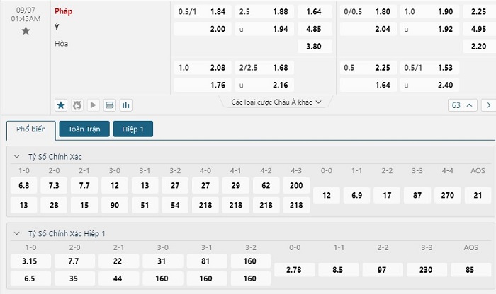 Soi kèo châu Á, kèo chấp Pháp vs Italia