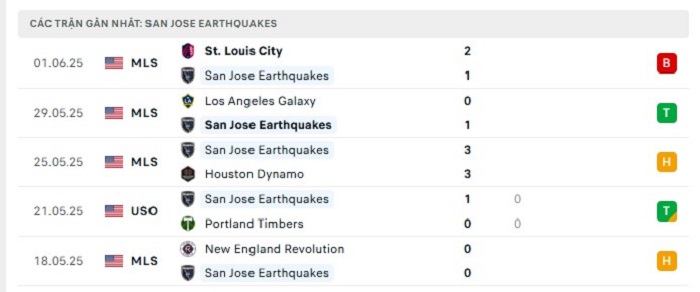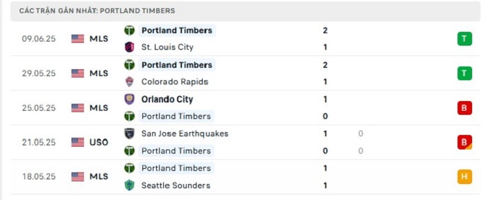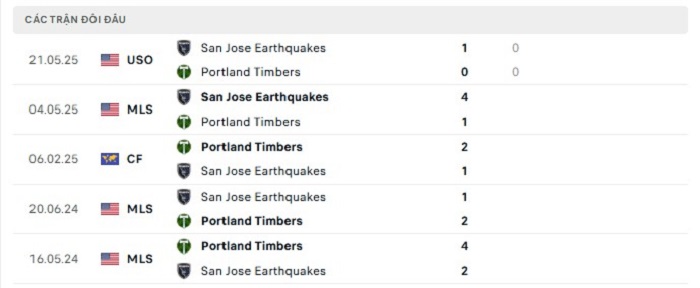 Phong độ gần đây Portland Timbers vs San Jose Earthquakes