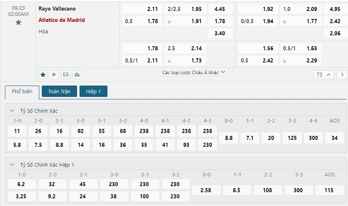Soi kèo châu Á, kèo chấp Rayo Vallecano vs Atletico Madrid