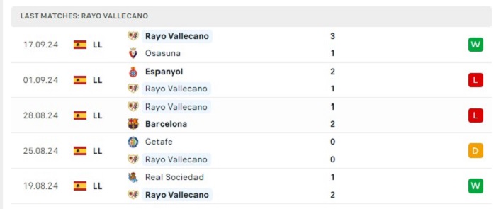 Phong độ gần đây Rayo Vallecano vs Atletico Madrid