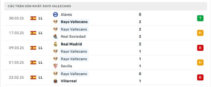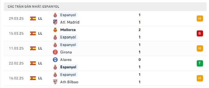 Phong độ gần đây Rayo Vallecano vs Espanyol