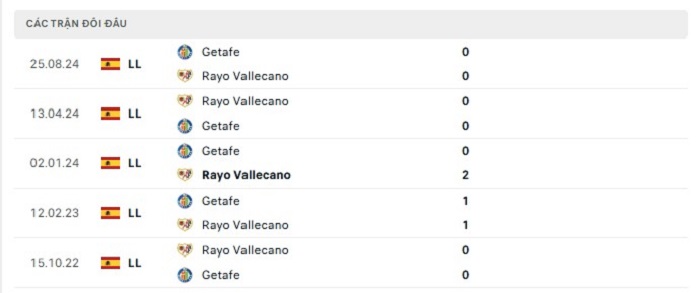 Thành tích trong quá khứ giữa Rayo Vallecano và Getafe cũng thấy được thực lực cân bằng của hai đội, cụ thể mỗi bên có cho mình được 2 trận thắng trong khi có tới 6 trận đấu hoà kèo châu Âu cho thấy việc phân thắng bại của hai đội là rất khó. Hơn nữa về mặt phong độ mùa này giữa Rayo Vallecano và Getafe cũng không có quá nhiều chênh lệch với nhau bởi vậy mà không loại trừ khả năng bất phân thắng bại của hai đội tại lần gặp nhau sắp tới.