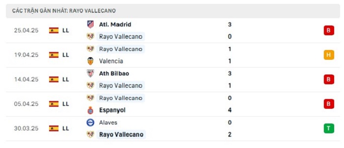 - Phong độ Rayo Vallecano