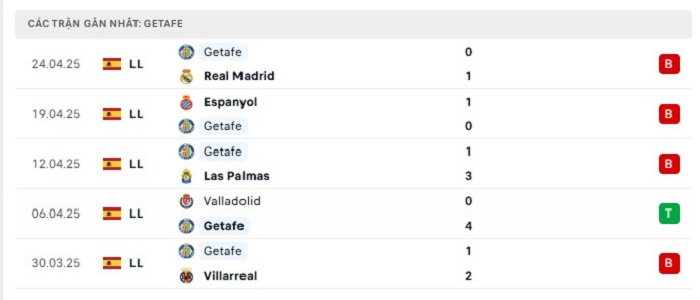 - Phong độ Getafe