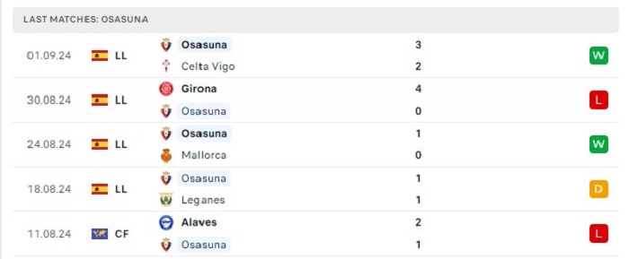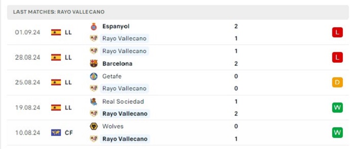 Phong độ gần đây Rayo Vallecano vs Osasuna