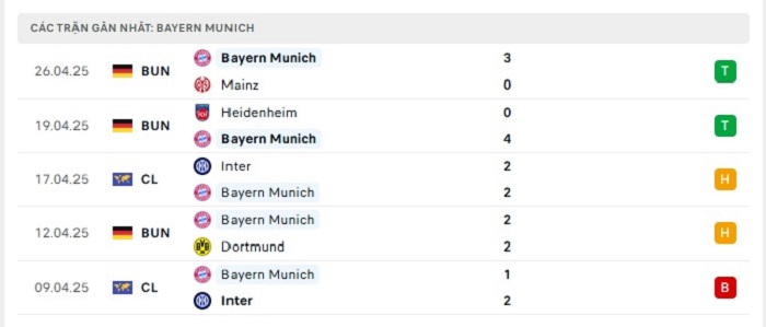 - Phong độ Bayern Munich