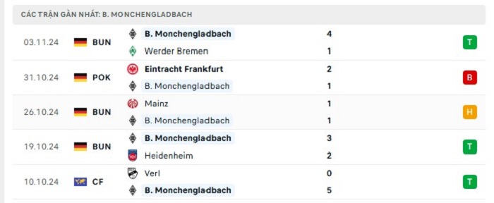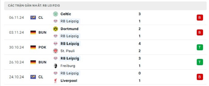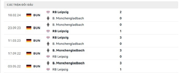 Phong độ gần đây RB Leipzig vs Borussia Monchengladbach