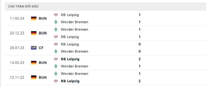 Lịch sử đối đầu của RB Leipzig vs Werder Bremen