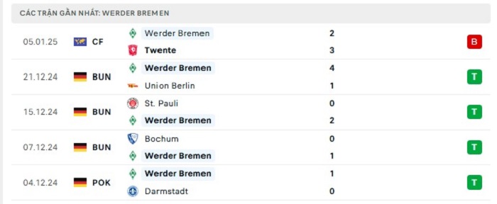 • Phong độ Werder Bremen