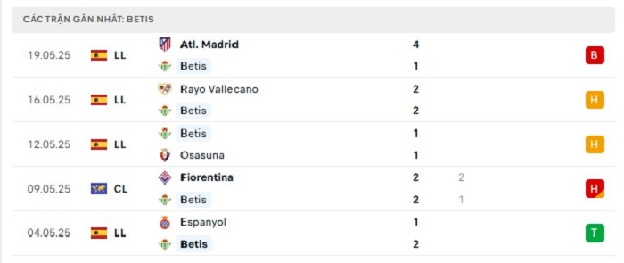 - Phong độ Real Betis