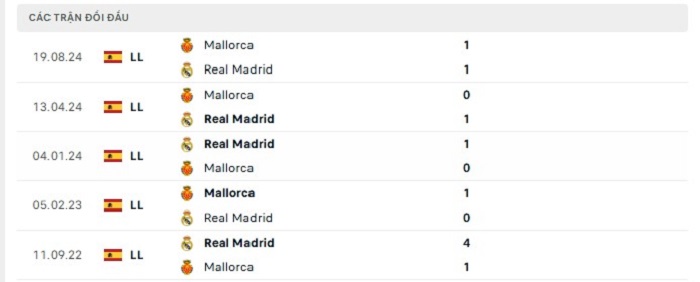 Phong độ gần đây Real Madrid vs Mallorca