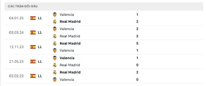 Lịch sử đối đầu của Real Madrid vs Valencia