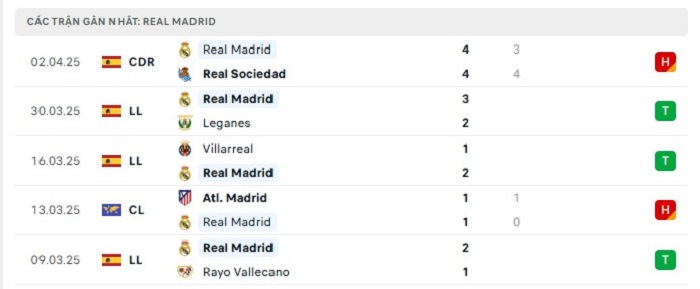 • Phong độ Real Madrid
