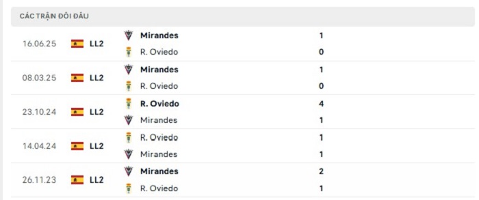 Thống kê có thể thấy được những làn gặp nhau giữa Real Oviedo và Minrades vốn cũng không có quá nhiều bàn thắng ghi được, cụ thể cả 2 lần gặp nhau gần nhất chỉ có được từ 1 bàn thắng ghi được trở xuống. Với yếu tố của một trận chung kết cạnh tranh tấm vé lên hạng càng khiến cho hai đội có sự thận trọng nhiều hơn, do vậy mà khó có thể kỳ vọng tới một trận đấu bùng nổ về mặt tỷ số ghi được cho cả hai đội ở lần gặp nhau này.