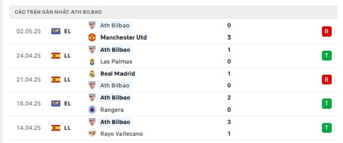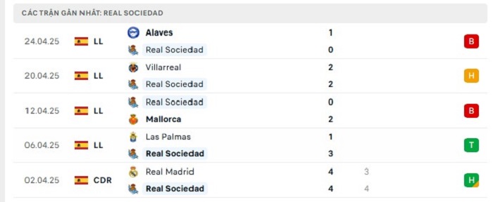 Phong độ gần đây Real Sociedad vs Athletic Bilbao
