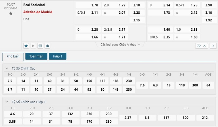 Soi kèo châu Á, kèo chấp Real Sociedad vs Atletico Madrid