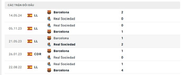 Bảng bóng đá trận đấu Real Sociedad vs Barcelona