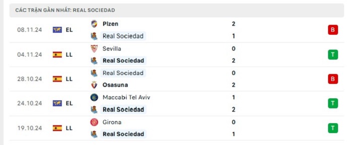 - Phong độ Real Sociedad