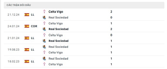Phong độ gần đây Real Sociedad vs Celta Vigo