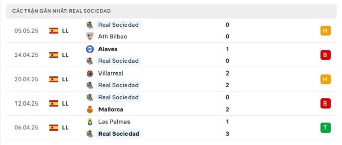 - Phong độ Real Sociedad
