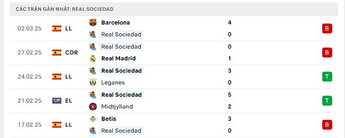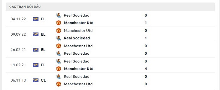 Thành tích trong quá khứ Real Sociedad cũng từng gặp không ít những khó khăn trước Manchester United, cụ thể là tổng cộng 6 lần gặp nhau gần đây Real Sociedad chỉ thắng 1, hoà 2 và thua 3 theo mốc kèo châu Âu cả trận. Mùa giải này với Manchester United thì sân chơi Europa League chính là hy vọng duy nhất còn lại để có thể cạnh tranh danh hiệu, họ cũng thể hiện những quyết tâm cao với thành tích bất bại qua 8 trận đấu của mình tại vòng bảng trước đó, chính bởi vậy mà không loại trừ khả năng hai đội bất phân thắng bại trong lần gặp nhau này.