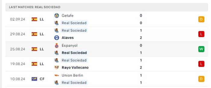 - Phong độ Real Sociedad