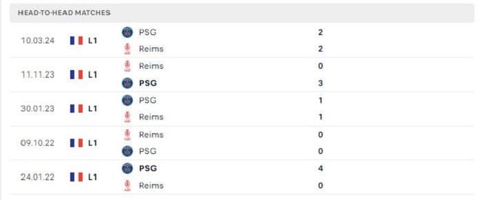 Lịch sử đối đầu của Reims vs Paris Saint Germain