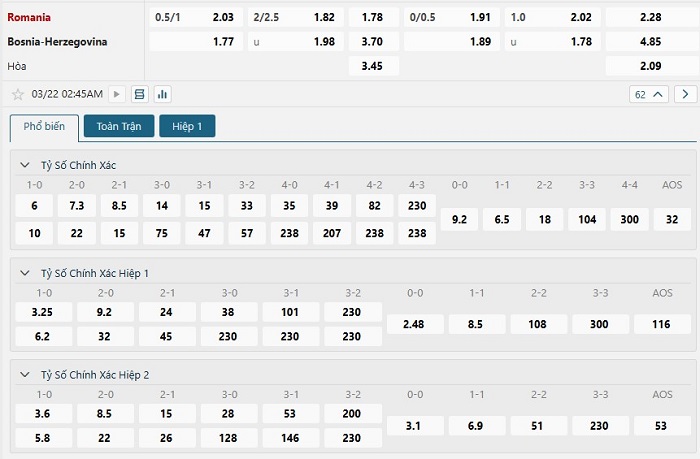 Soi kèo tỷ số Romania vs Bosnia & Herzegovina