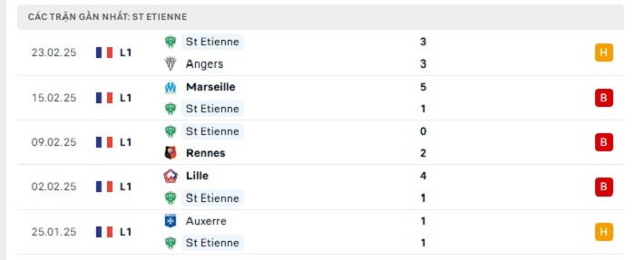 Bảng bóng đá trận đấu Saint Etienne vs Nice