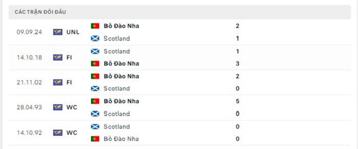 Bảng  bóng đá trận đấu Scotland vs Bồ Đào Nha