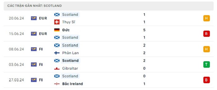 Phong độ gần đây Scotland vs Hungary