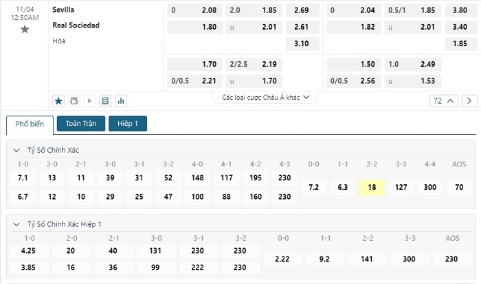 Soi kèo châu Á, kèo chấp Sevilla vs Real Sociedad